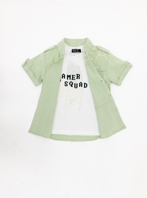 Boys' 2-Piece Cotton Shirt & Pant Set – Cool, Comfortable, and Ready for Summer - LightGreen
