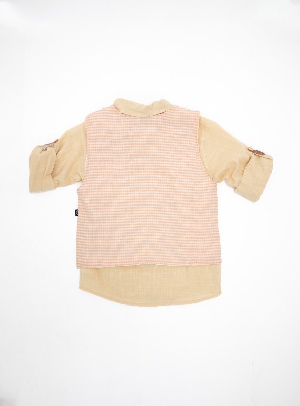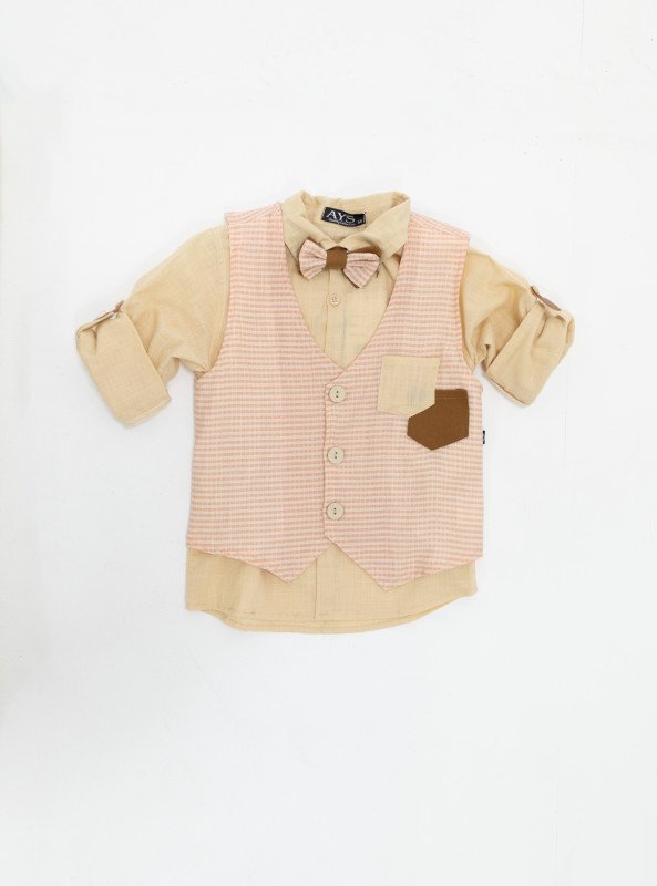 Make dressing up easy and stylish with this charming 3-piece formal set for boys, designed for special occasions and made with everyday comfort in mind. Crafted from 100% soft cotton, this outfit includes a smart long-sleeve shirt with roll-up tabs, a matching waistcoat with contrast pocket detailing, a stylish bow tie, and tailored trousers with an elastic drawstring waistband for the perfect fit.