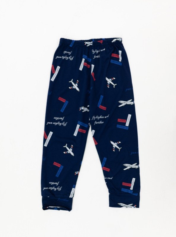 Boys' Airplane Print Pajama Set – Short Sleeve Top & Full-Length Pants