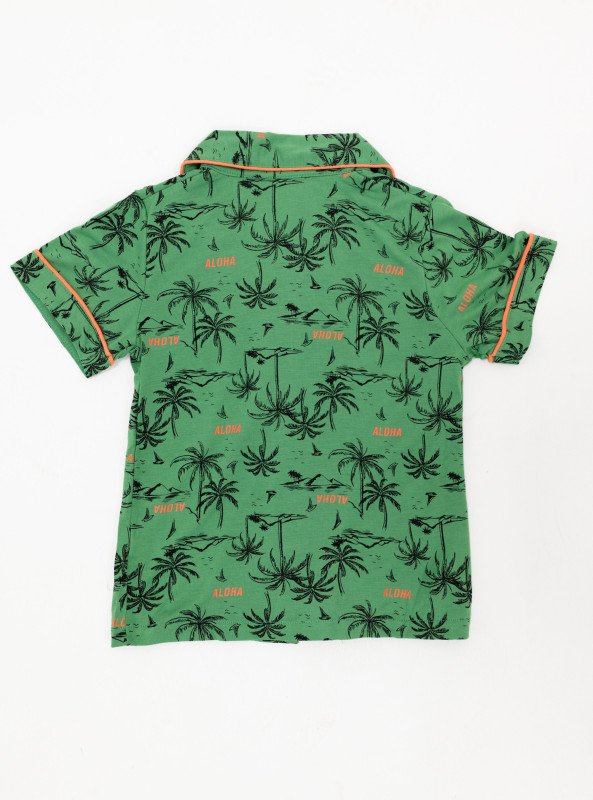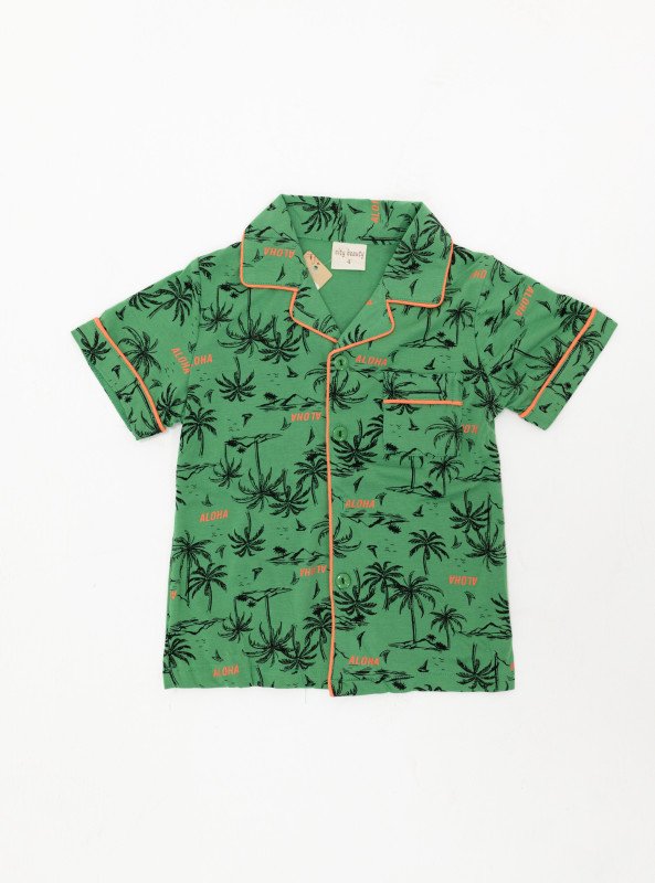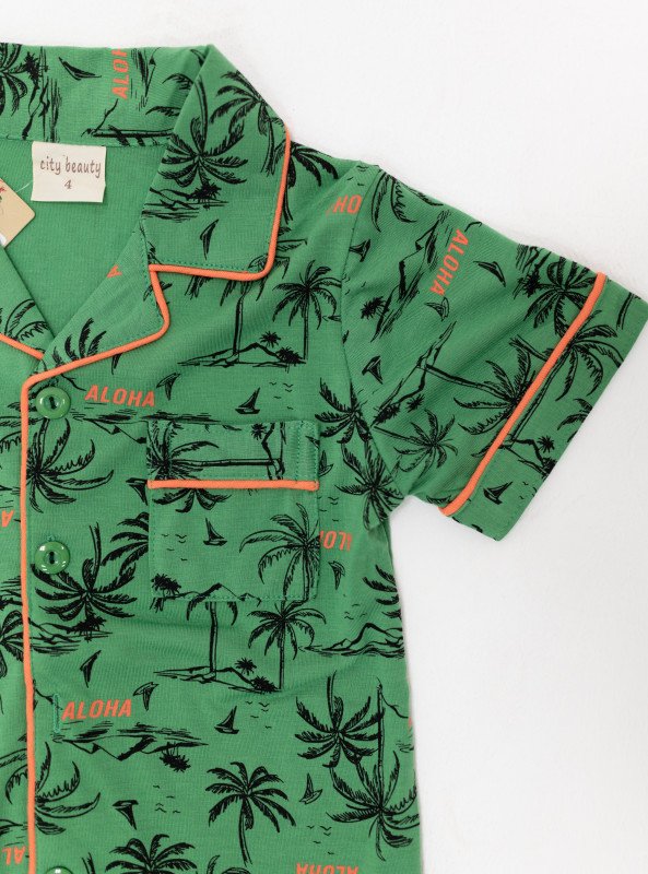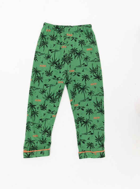 Boys' Aloha Palm Tree Pajama Set – Button-Up Tropical Shirt & Full-Length Pants