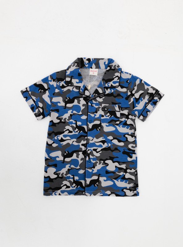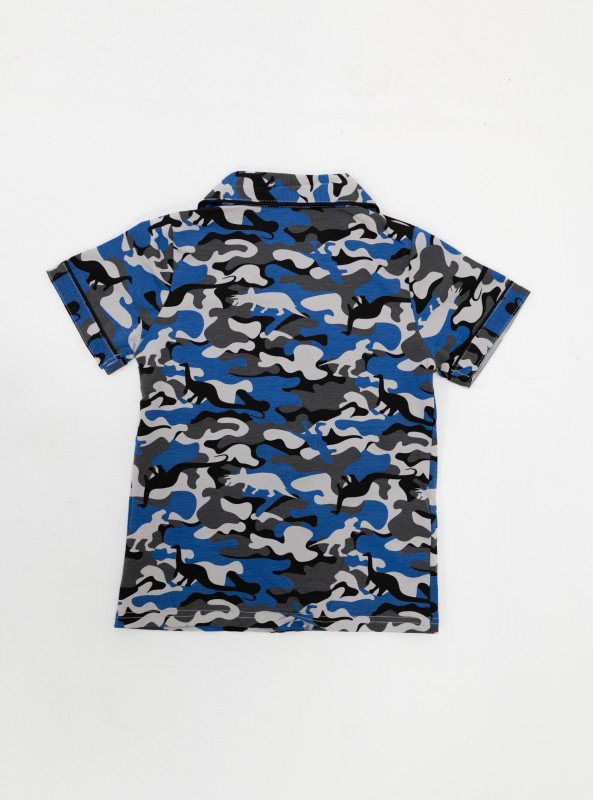 Let your little one sleep in comfort and wake up in style with our Boys' Camouflage Print Pajama Set. Made with a soft and breathable cotton-blend fabric (65% Polyester, 35% Cotton), this two-piece set features a short-sleeve button-up shirt with a chest pocket and elastic waistband full-length pants—ideal for year-round comfort.