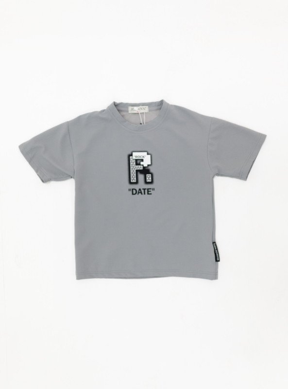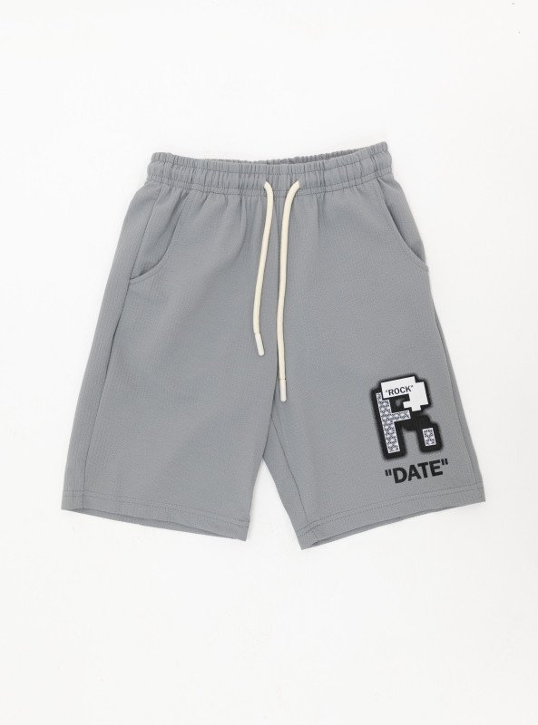 Boys’ Casual Embroidered “DATE” Set – T-Shirt & Shorts - Gray