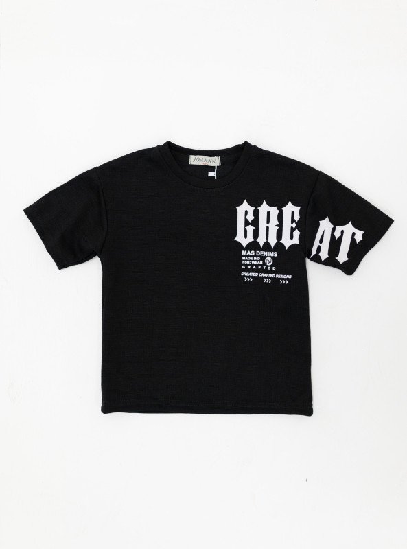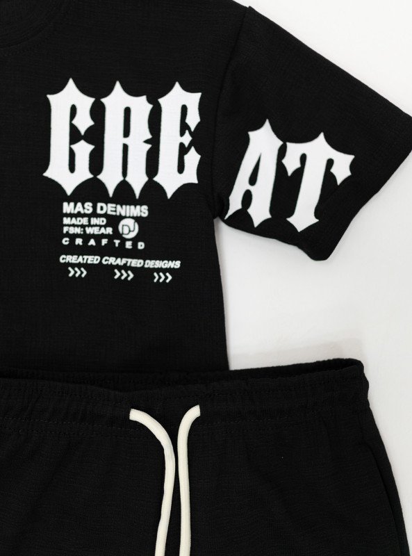 Boys’ Cotton Graphic “GREAT” T-Shirt & Shorts Set - Black