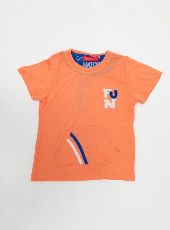 Design: Short-sleeve tee with "FUN" applique & contrast pocket