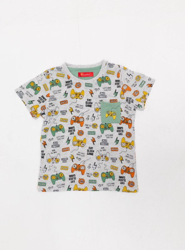 Get your little gamer ready for bedtime in style with our Boys' Game-Themed Pajama Set! Featuring a fun and colorful print of game controllers and playful text, this set is perfect for boys who love both comfort and character. The full-sleeve top with chest pocket detail pairs effortlessly with solid-colored pajama bottoms, creating a relaxed look that’s great for both lounging and sleeping.
