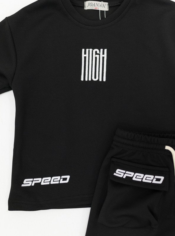 Boys’ “HIGH SPEED” Graphic Cotton Shorts Set - Black