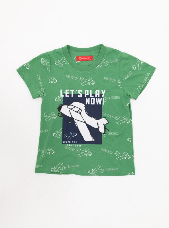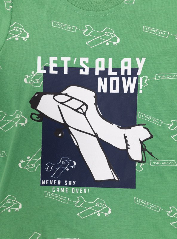Bold front print with “Let’s Play Now” slogan and game-themed design