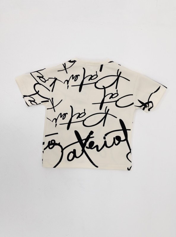 Made from 95% breathable cotton and 5% elastane, the fabric offers a soft, stretchy feel that keeps up with playtime, while staying cool and comfortable all day. The t-shirt features a bold, abstract script print for a modern, energetic look, and the matching cargo shorts are equipped with roomy pockets and an adjustable drawstring waist for the perfect fit.
