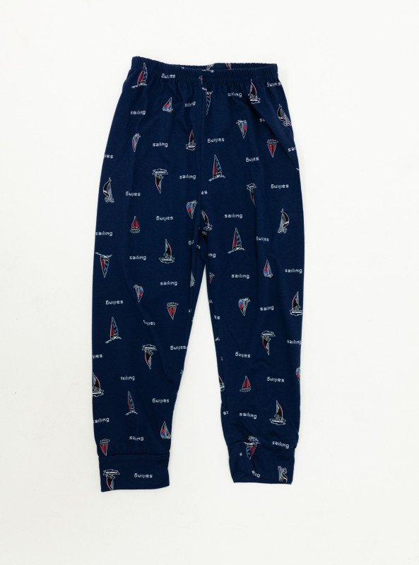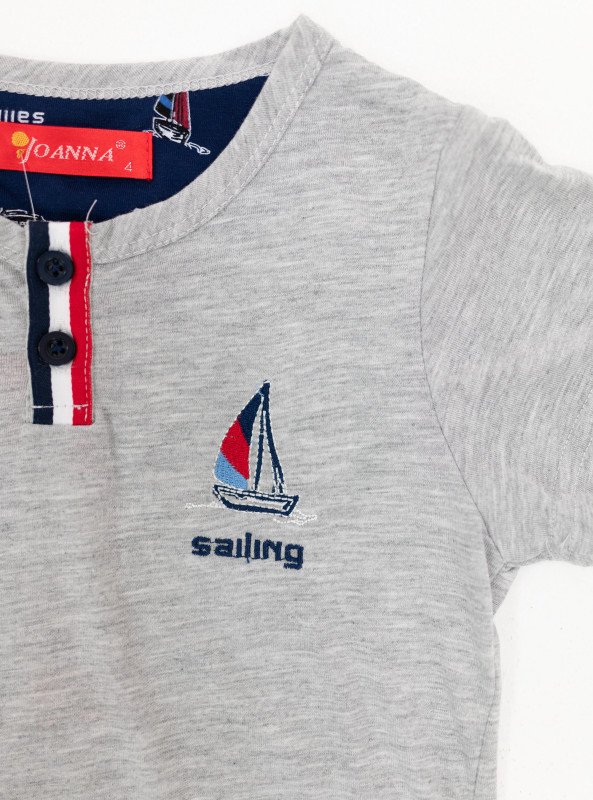 Boys' Sailing Theme Pajama Set – Buttoned Tee & Printed Pants