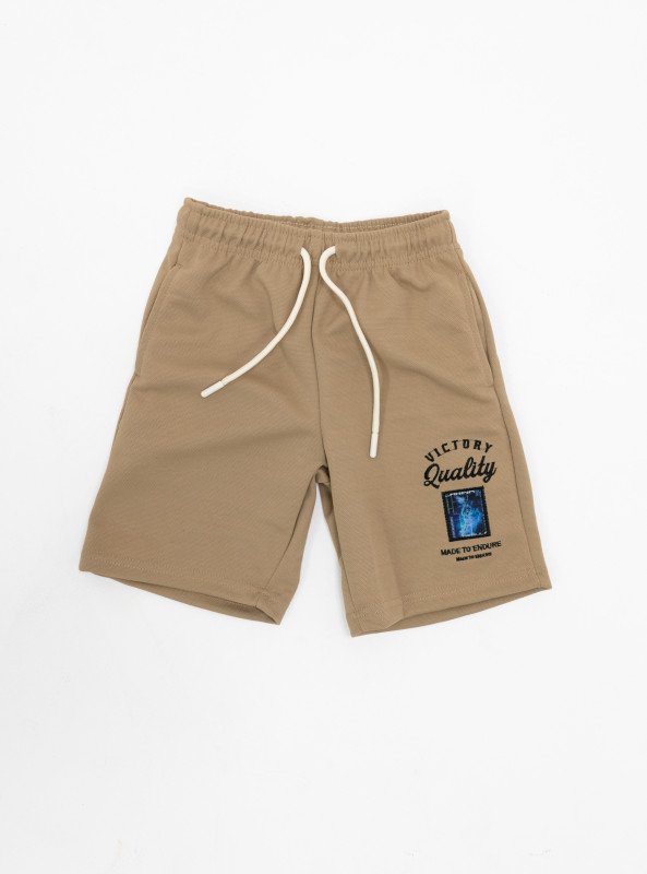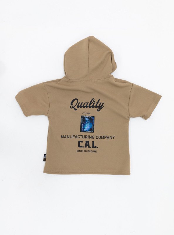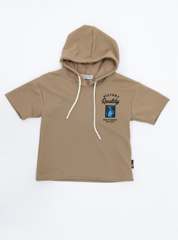 Boys’ Short Sleeve Hooded Set with Graphic Print - LightBrown