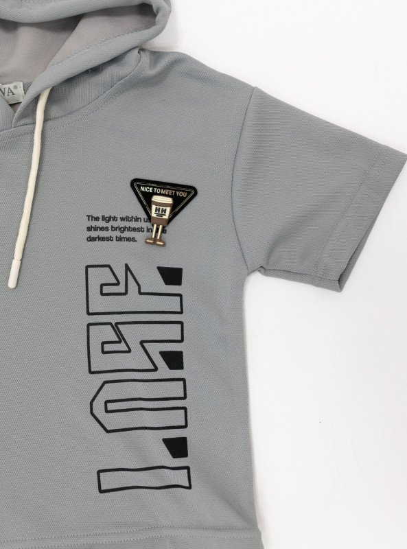 Add energy and attitude to your boy’s wardrobe with this statement hooded set, designed for comfort and style. This two-piece features a short-sleeve hoodie paired with elastic-waist shorts, both adorned with bold futuristic prints and a motivational quote: "The light within us shines brightest in the darkest times."