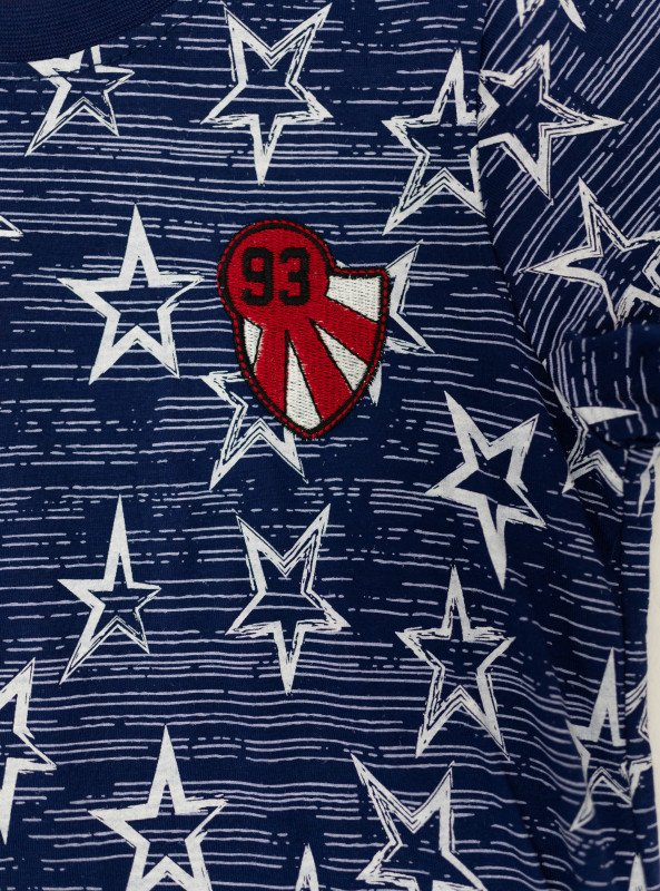 Bring out the star in your boy with our Boys' Star Stripe Lounge Set! Featuring a soft crewneck t-shirt adorned with playful star prints and a sporty embroidered "93" patch, this set is all about comfort with cool style. The matching jogger-style pants come with contrast side stripes for a modern, athletic touch.