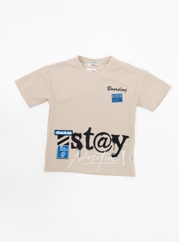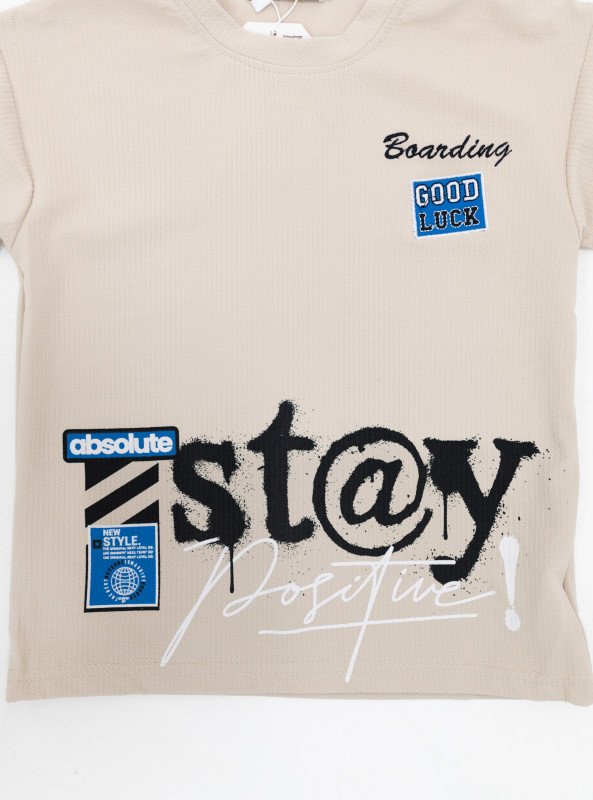 Boys’ “Stay Positive” Graphic Set – T-Shirt & Shorts - Beige