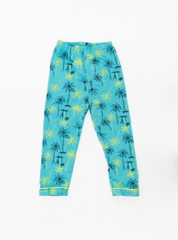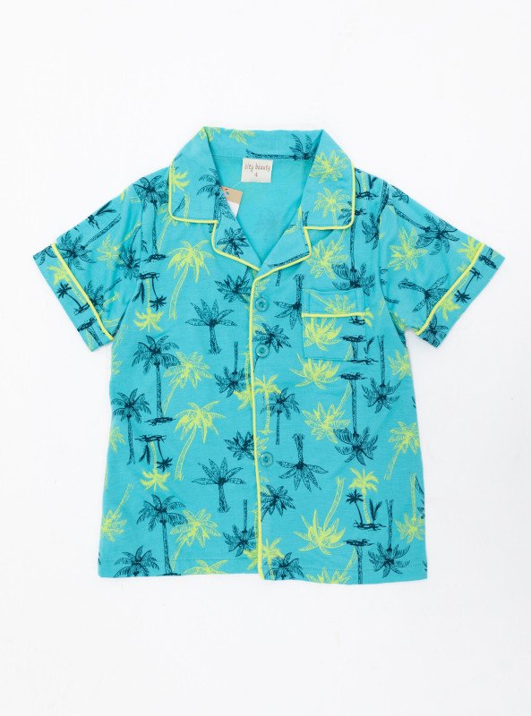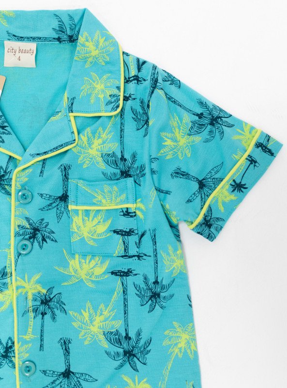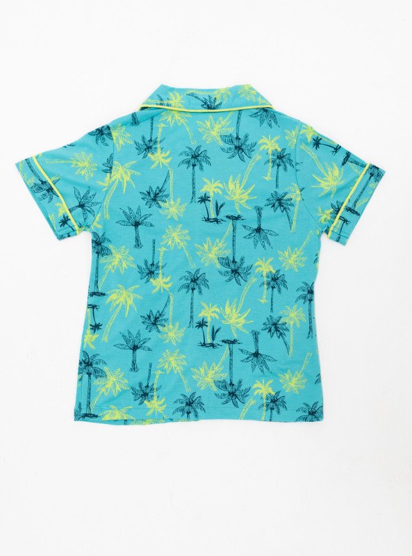 Boys' Tropical Button-Up Pajama Set – Palm Tree Print Shirt & Pants - Turquoise