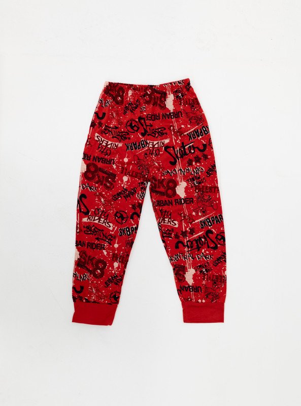 The set includes a short-sleeved crew neck tee and full-length jogger-style pants with elastic waistbands and cuffs for a secure and easy fit. Available in two eye-catching colorways — Bold Red and Cool Gray — each piece is covered in playful skate-themed graphics like “SK8”, “Urban Rider”, and “Central Park” for a look kids love.