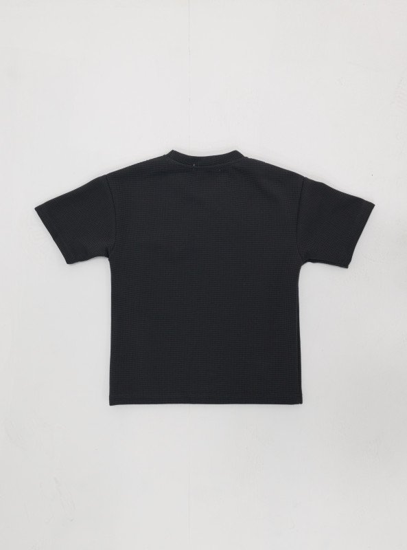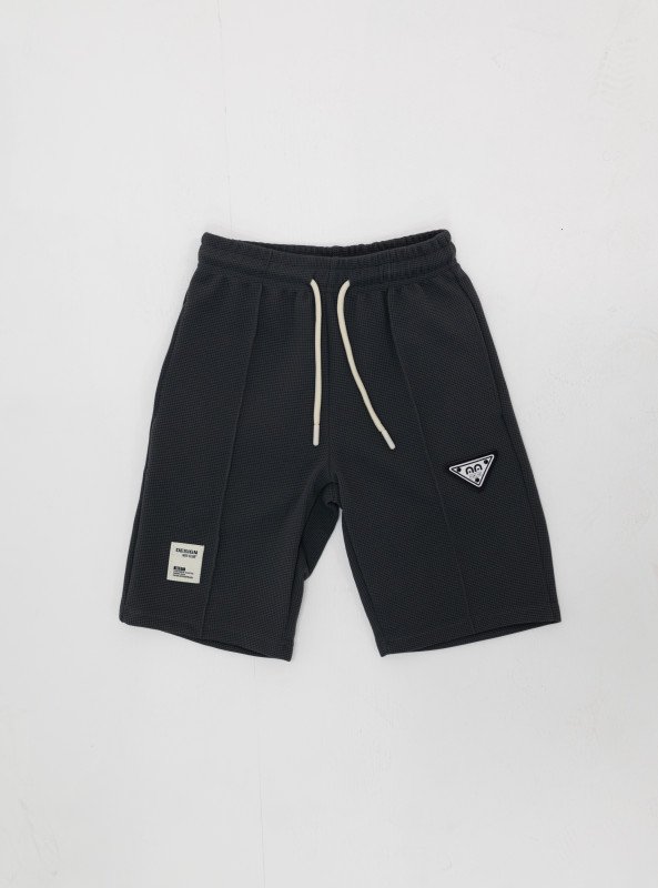 Designed in a lightweight waffle-textured fabric, the set includes a short-sleeved crew neck top and relaxed fit shorts with an adjustable drawstring waist. Eye-catching details like the triangle logo patch and branded hem label add a sporty, modern edge. Whether it's a day out, playtime, or lounging at home, this set delivers effortless style.