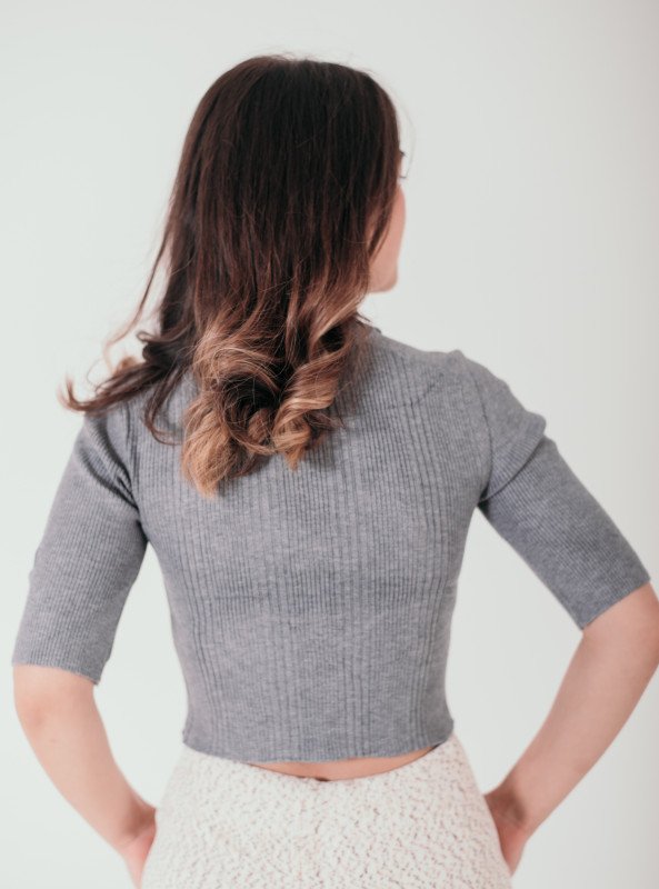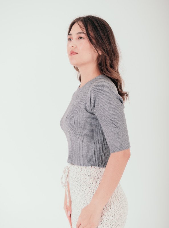 Essential Elegance: Ribbed Knit Cropped Top - Gray