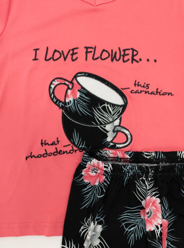Sip into style with our Girls’ Floral Tea Cup Pajama Set — where comfort meets cuteness! The top features a charming tea cup graphic with floral script details like “I love flower... this carnation, that rhododendron,” while the full-length pants are splashed with vibrant tropical flowers for a bold yet girly look.