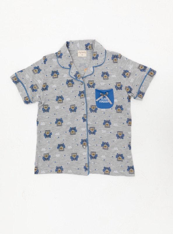 Girls' Printed Short Sleeve Pajama Set – Glam Forever Style - Gray