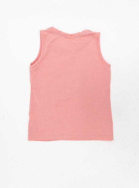 Girls' Sleeveless Cartoon Pajama Set – "Sleep Time" Bear Print - Pink