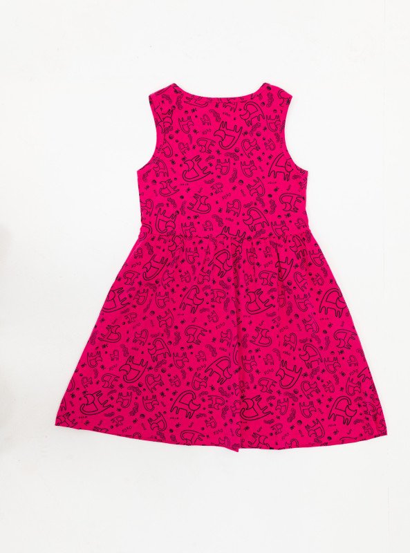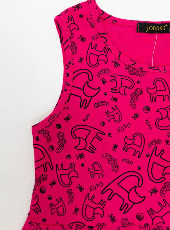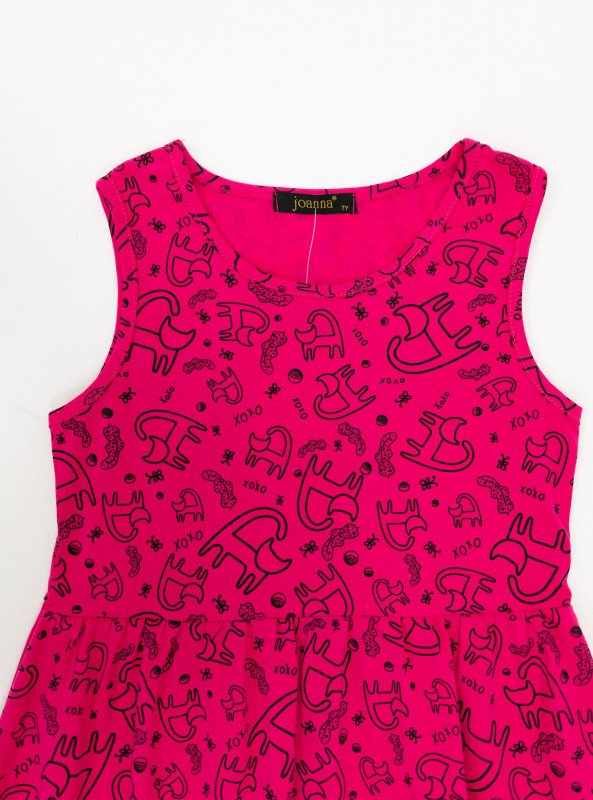 Brighten up your girl's wardrobe with this fun and comfy sleeveless mini dress, perfect for sunny days and playful outings. Designed in vibrant pink and cheerful yellow, each dress features a cute all-over cartoon print that adds personality and charm to her look.
