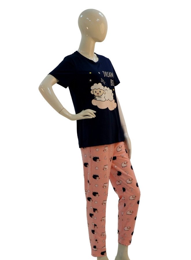 Women's Cotton Pajama Set – "Dream Big" Sheep Print Night Suit