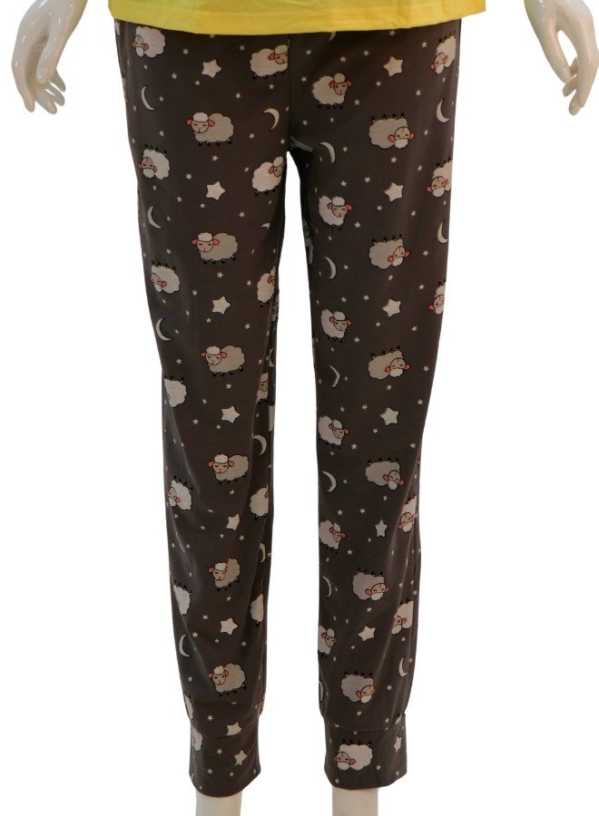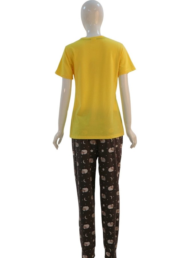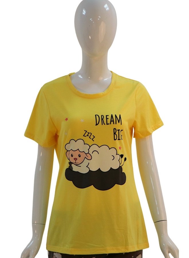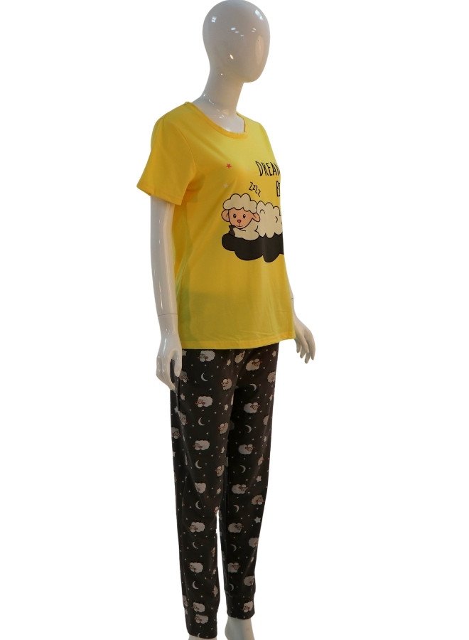 Women's Cotton Pajama Set – "Dream Big" Sheep Print Night Suit - Yellow