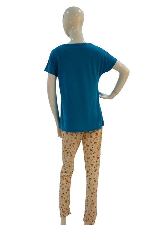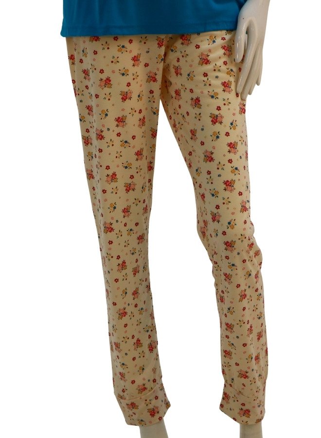 The top features a playful graphic of a koala cuddling a cup of tea under a hanging planter, with the charming “Houseplant” text printed above – a design that’s sure to bring a smile. The bottoms are adorned with delicate all-over floral prints, complementing the top beautifully for a coordinated and relaxing look.