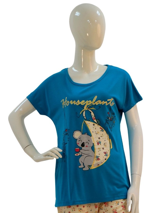 Women’s Cotton Printed Sleepwear Set – Koala “Houseplant” Design