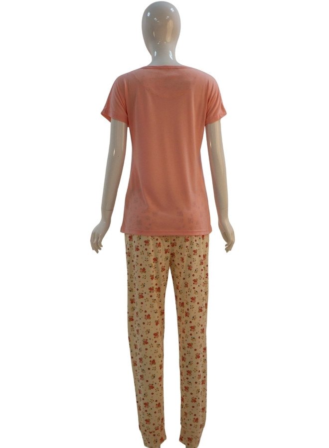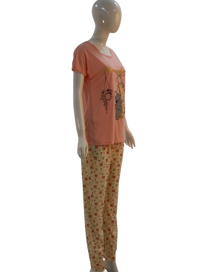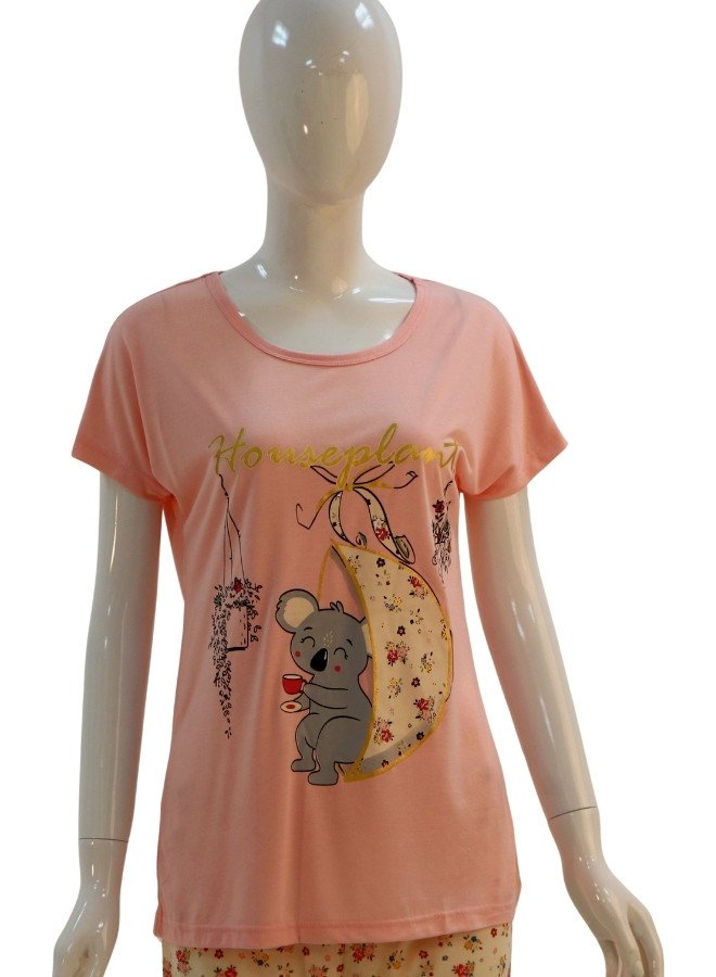 Women’s Cotton Printed Sleepwear Set – Koala “Houseplant” Design - Pink