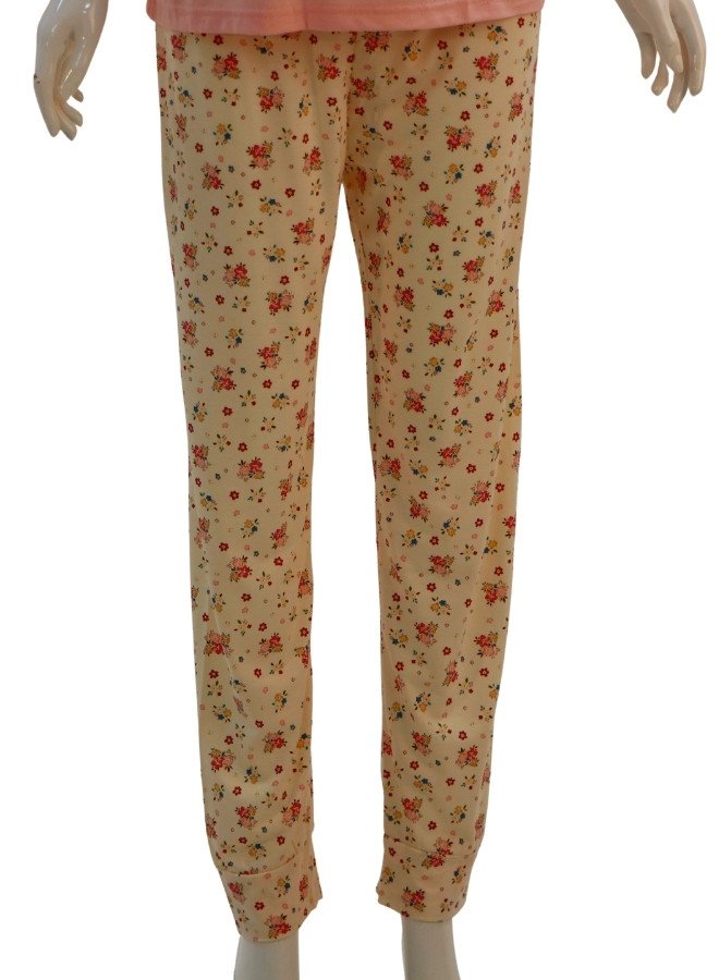 The top features a playful graphic of a koala cuddling a cup of tea under a hanging planter, with the charming “Houseplant” text printed above – a design that’s sure to bring a smile. The bottoms are adorned with delicate all-over floral prints, complementing the top beautifully for a coordinated and relaxing look.