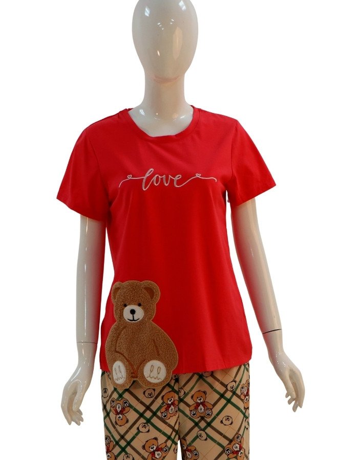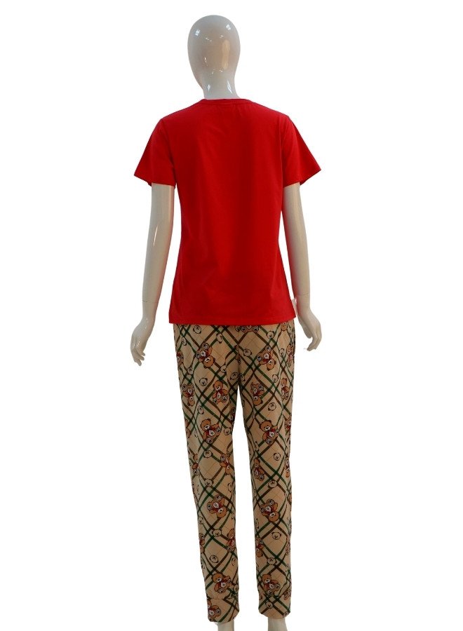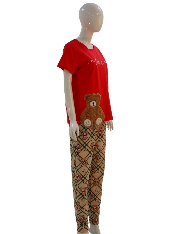Women's Cute Bear Print Pajama Set – 3 Colors - Red