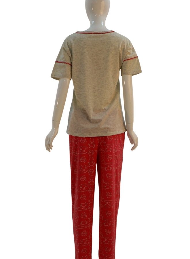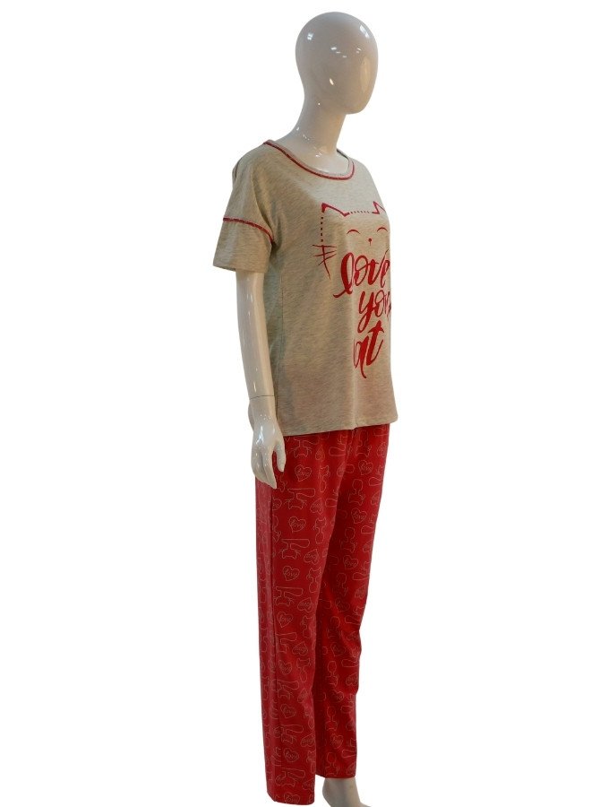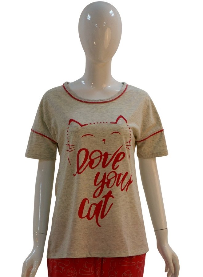 Women's "Love Your Cat" Cotton Pajama Set - LightGrey